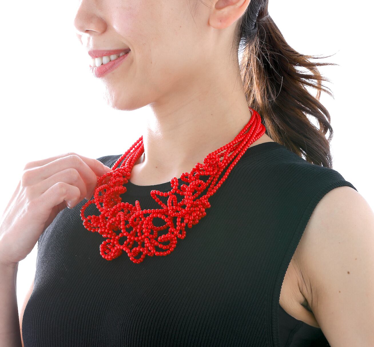 【Ricca (リッカ)】 6連 ストレッチネックレス (レッド)