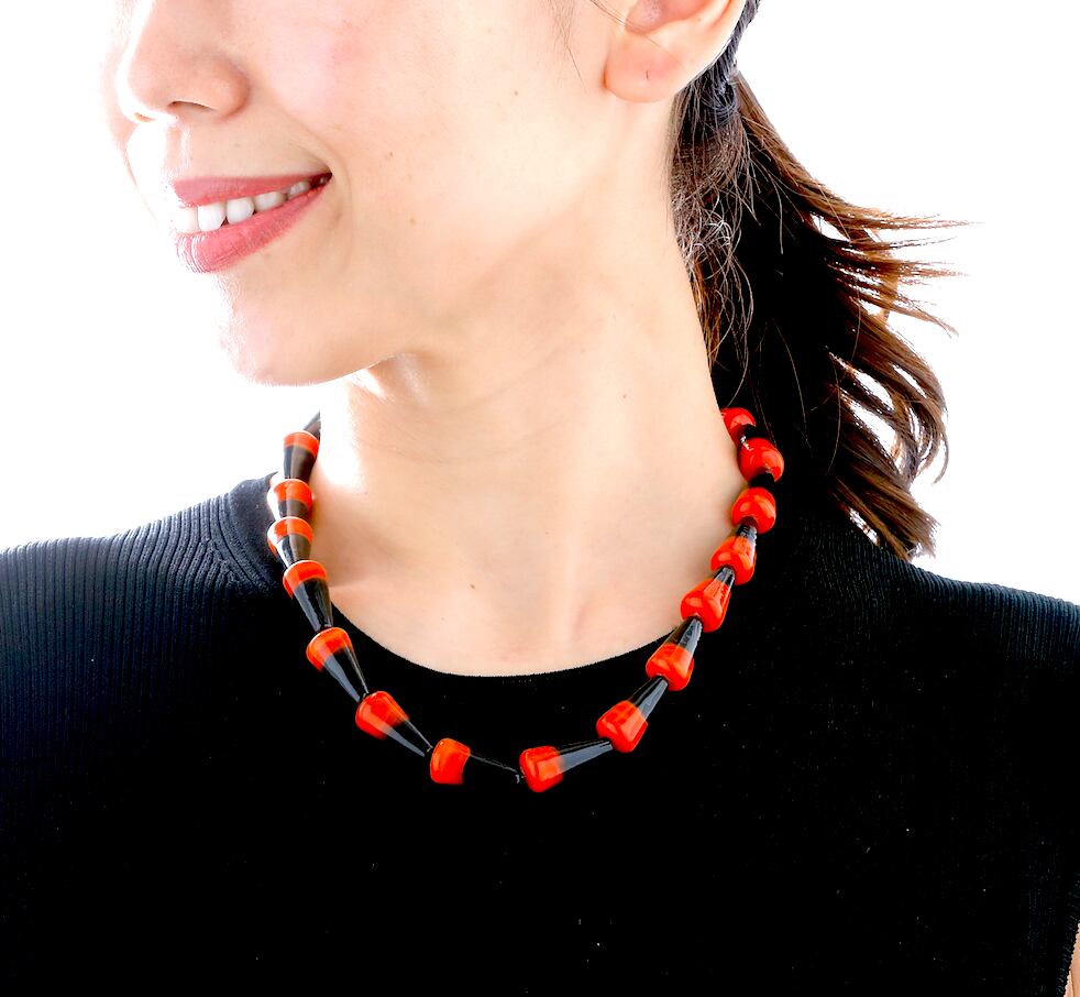 【CONO (コノ)】 ネックレス (ブラック&レッドオレンジ)