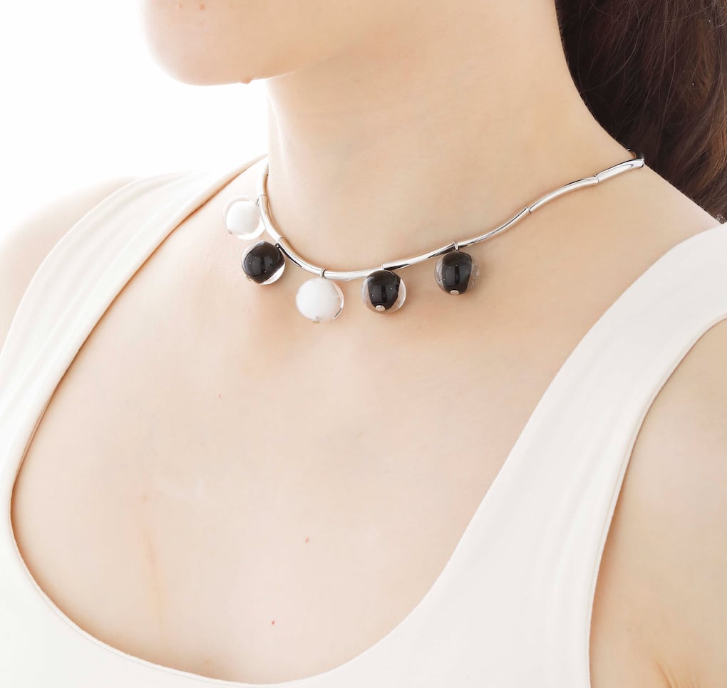 【Alessia (アレッシア)】 チョーカーネックレス (ブラック&ホワイト)