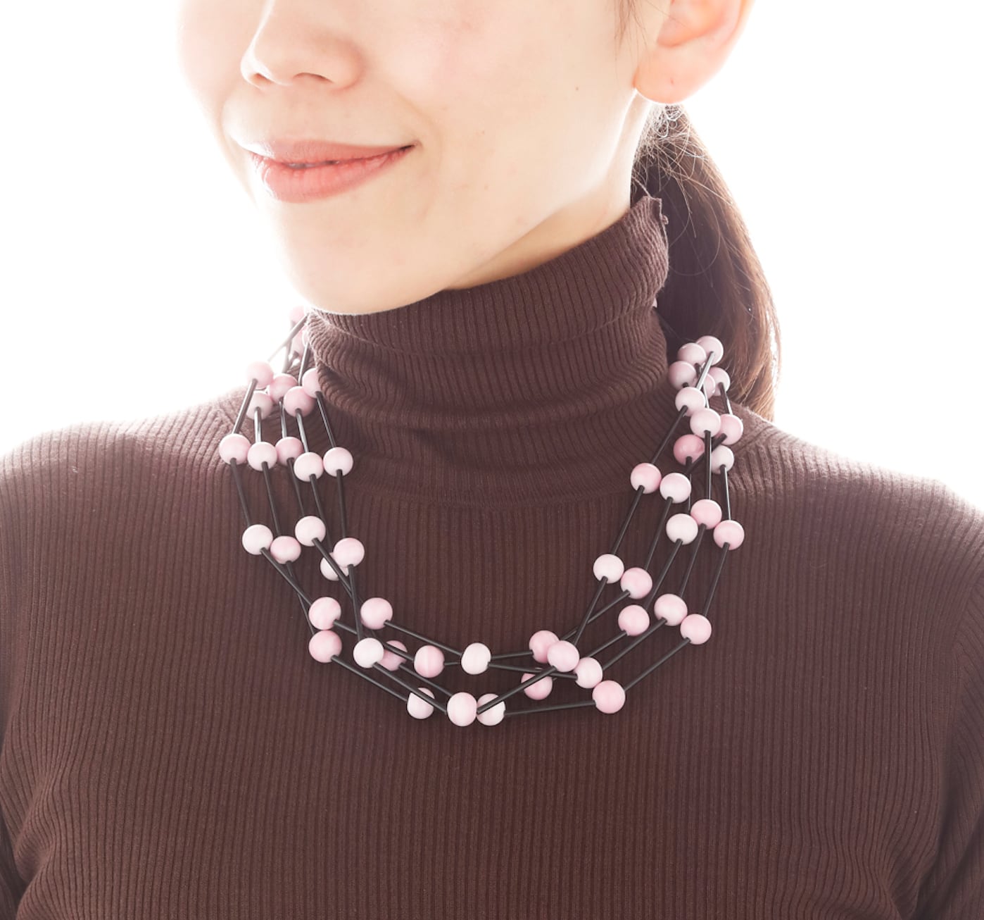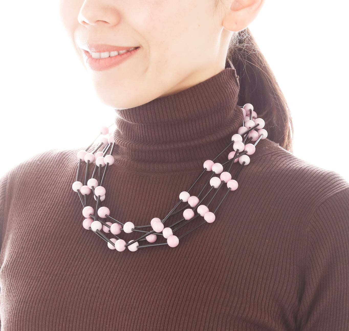 【Giorgia (ジョージア)】5連 ネックレス (ピンク&ブラック)